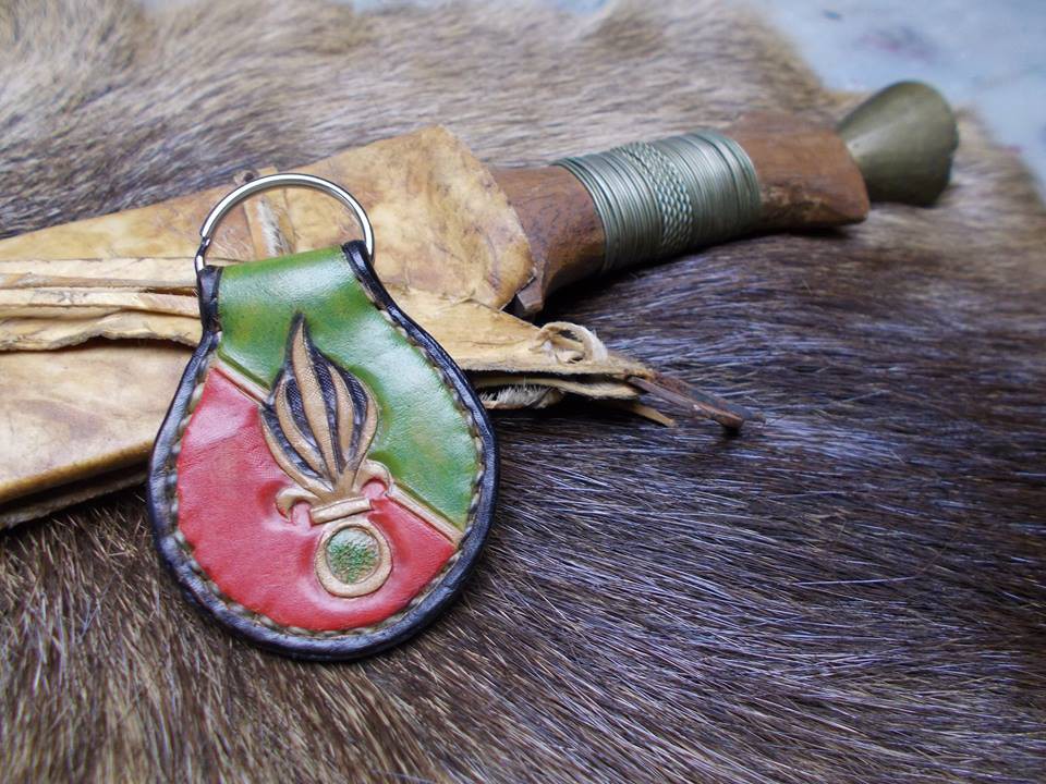 Porte clé Légion étrangére fait main-grand model   7cmx5cm COUTURE SELLIER Cuir repoussé teinture high color...