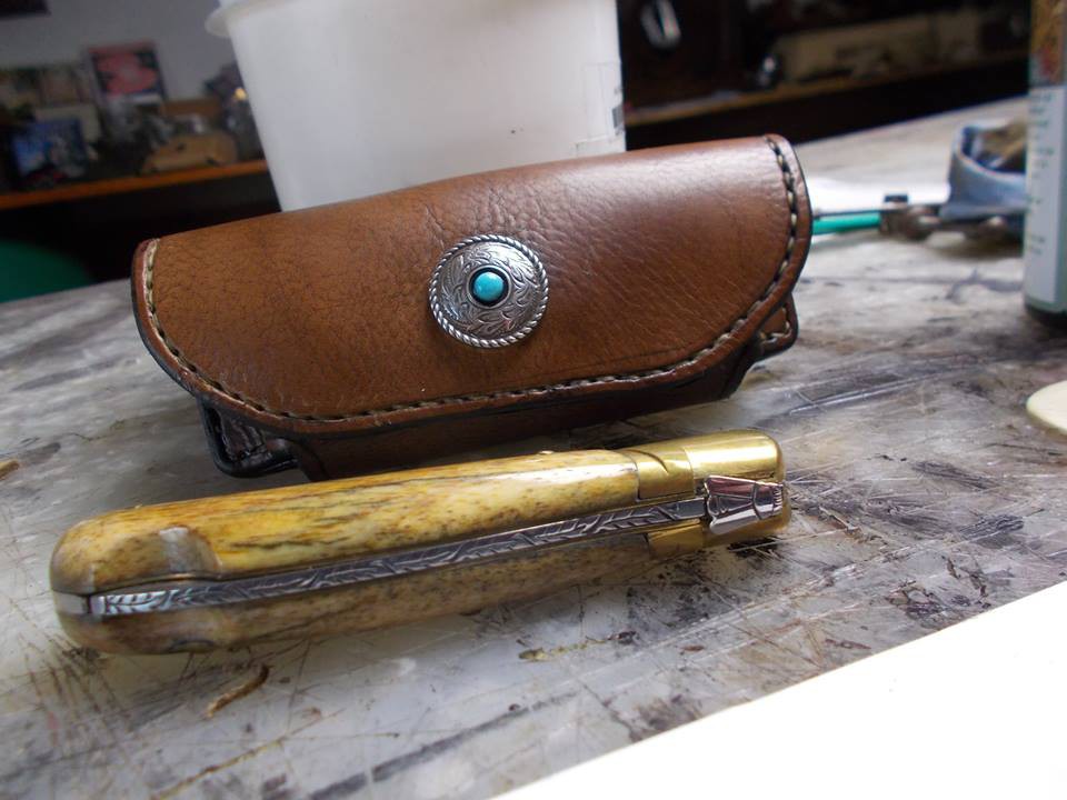 etui a cooteau en cuir de 3mm pleine fleure double veau